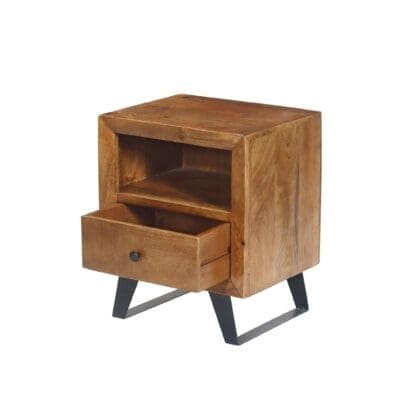 Kansō Bedside Table — a handcrafted piece that celebrates minimal design and mindful living. Made from responsibly sourced solid mango wood, each table is hand-finished in a rich walnut tone that brings natural warmth and depth to your bedroom.